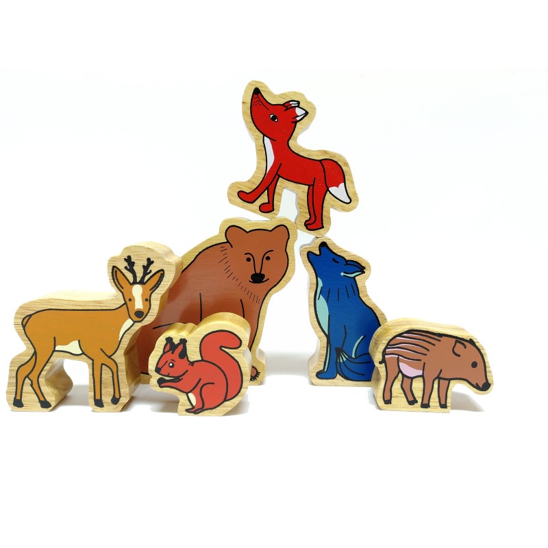 Inhoud : beer, wolf, ree, vos, eerkhoorn en wild zwijntje.