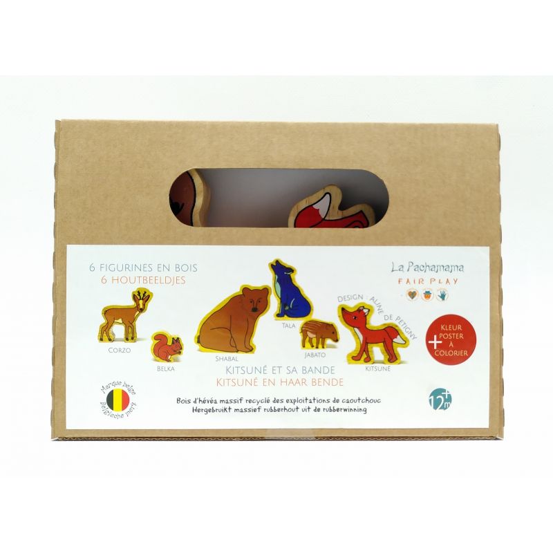 Kitsuné en haar bende - Pak van 6 hout beeldjes