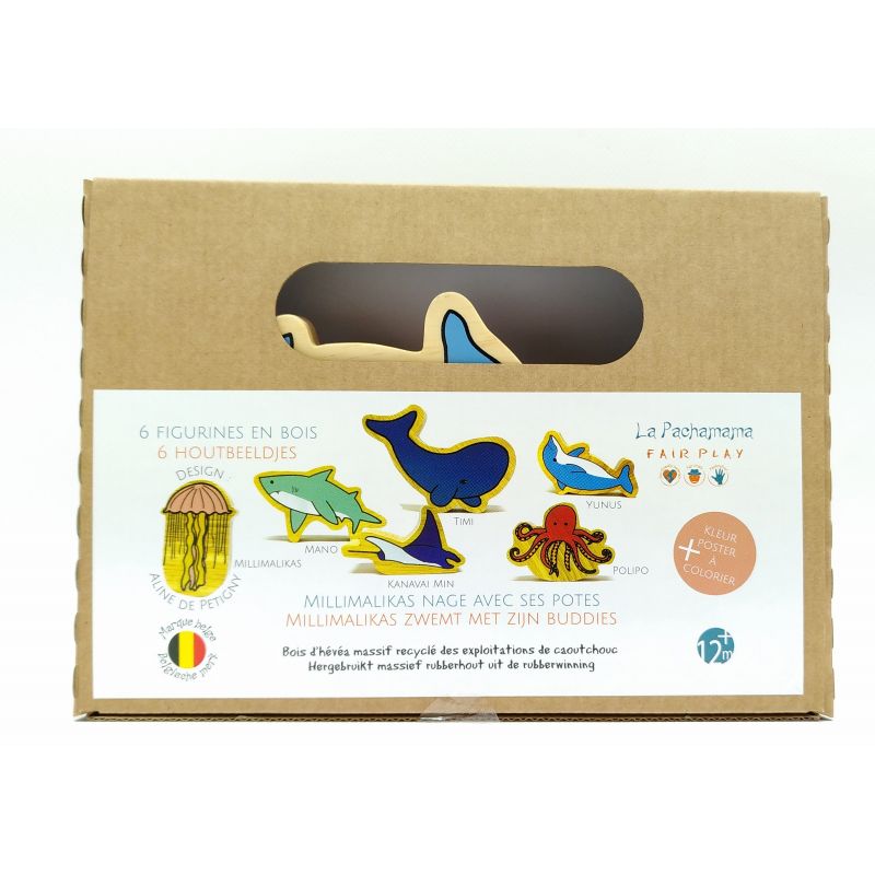Millimalikas zwemt met zijn buddies - Pak van 6 hout beeldjes